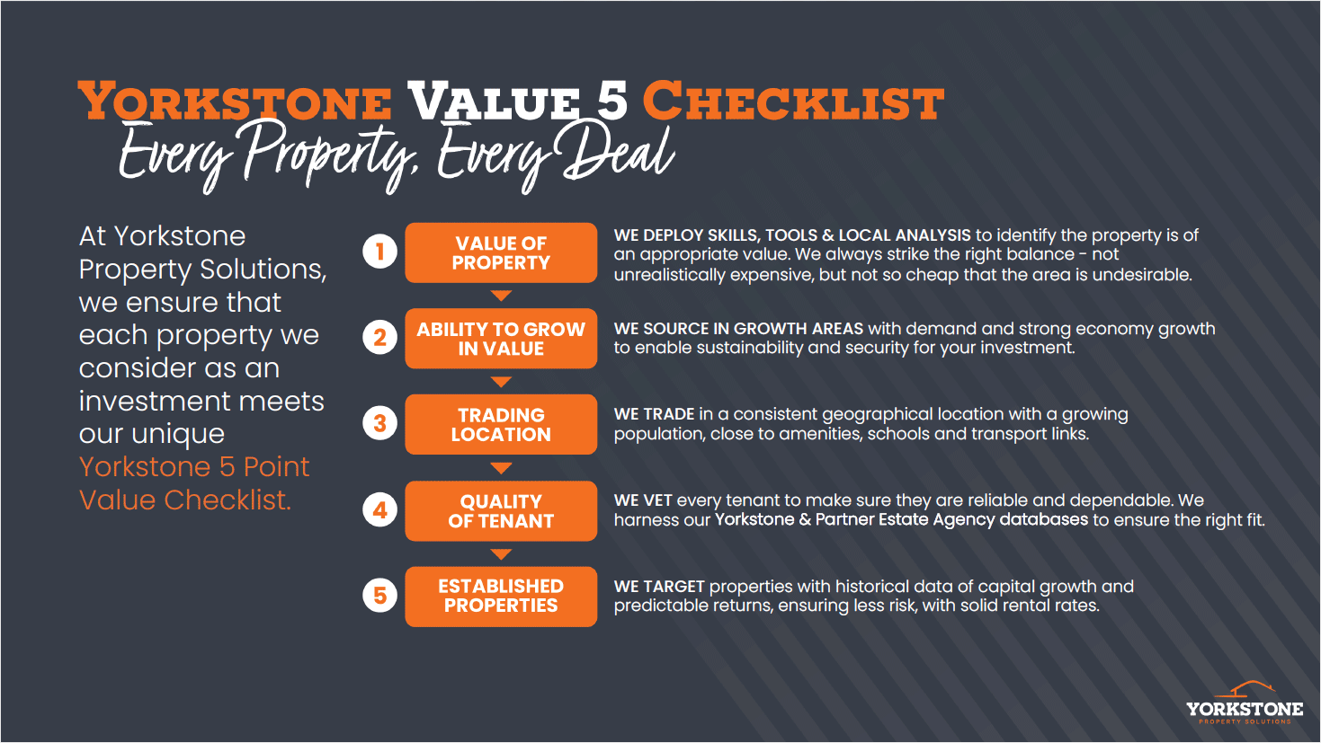 It allows Yorkstone to filter risk early, maintain consistency across every acquisition, and only progress properties that support a long-term investment strategy.