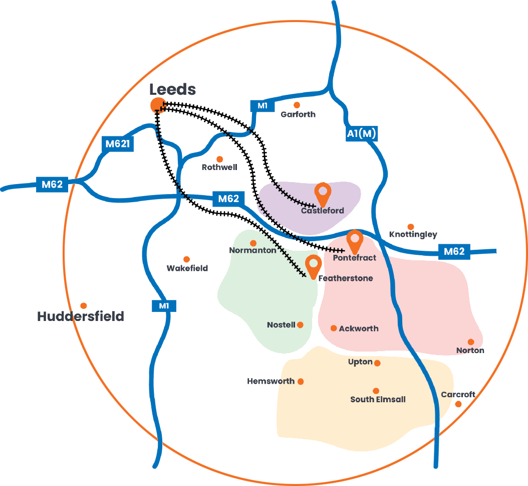 Our work centres around the Five Towns area - Castleford, Pontefract, Featherstone, Knottingley, and Normanton, all within the wider West Yorkshire market.